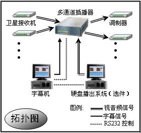 宙际ZM100系统是利用有线电视台的优势,把自办台的字幕及图像广告在不影响其他频道正常节目播出的同时插入到收视率比较高的上星电视节目中,从而给自己带来更大的广告效益。该系统由插播器、字幕机两部分组成,其中插播器可以根据客户的实际需求选购通道数,1 到 99 路任意选择,每台插播器 多 16 路,超过 16 路以上可以增加插播器实现及连。字幕机是为插播器提供广告字幕的来源,插播时可以同时插播也可以分别插播。所有设定都是经过软件来完成,工作 方便。选择我公司的 宙际ZM100-100 硬盘播出系统,结合该套设备使用可以把被插频道的图像广告替换为自办频道的图像广告。插播 形式的广告都可以定时自动、手动播出。该套设备是各级有线电视台、企业电视台、有线网络公司创收 为理想的设备。